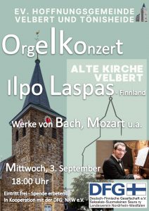 Hierfür konnte ein junger und vielseitiger finnischer Organist gewonnen werden – das Konzert findet statt in Zusammenarbeit mit der deutsch-finnischen Gesellschaft.