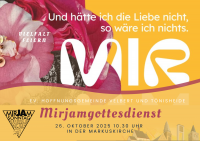 Die Prophetin Mirjam spielt in der jüdischen und christlichen Frauenbewegung eine prominente Rolle. Deshalb gibt sie dem Gottesdienst, der in der Rheinischen Landeskirche einmal jährlich gefeiert wird, ihren Namen. Im Mittelpunkt steht die Gerechtigkeit zwischen Frauen und Männern in Kirche und Gesellschaft. In diesem Jahr soll im Mirjamgottesdienst besonders die Vielfalt der Liebe gefeiert werden: jeder Mensch – unabhängig von Geschlecht und sexueller Orientierung – ist geliebt und darf lieben! Denn: Hätte ich die Liebe nicht, so wäre ich nichts …